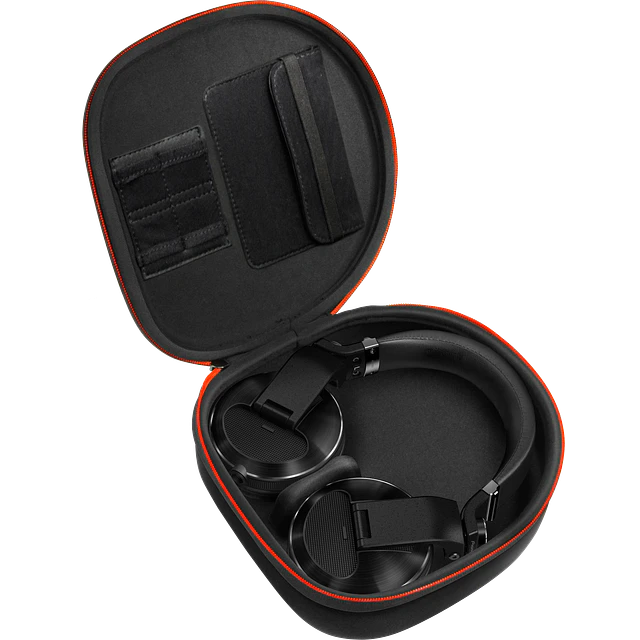 Un estuche de transporte plano diseñado para adaptarse a todas las maletas de viaje protege tus audífonos de daños durante los traslados y proporciona espacio para guardar dispositivos USB y tarjetas de memoria SD.